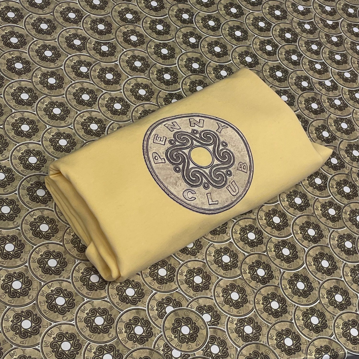 This tee features a reworked Danish coin, redesigned with "PennyClub" replacing the original lettering.